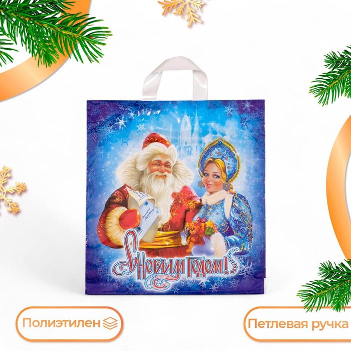 Пакет «С Новым Годом», полиэтиленовый с петлевой ручкой, 60×50 см
