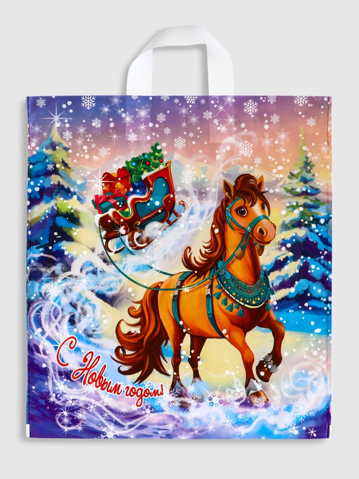 Пакет «Стук копыт», полиэтиленовый с петлевой ручкой, 40×42 см
