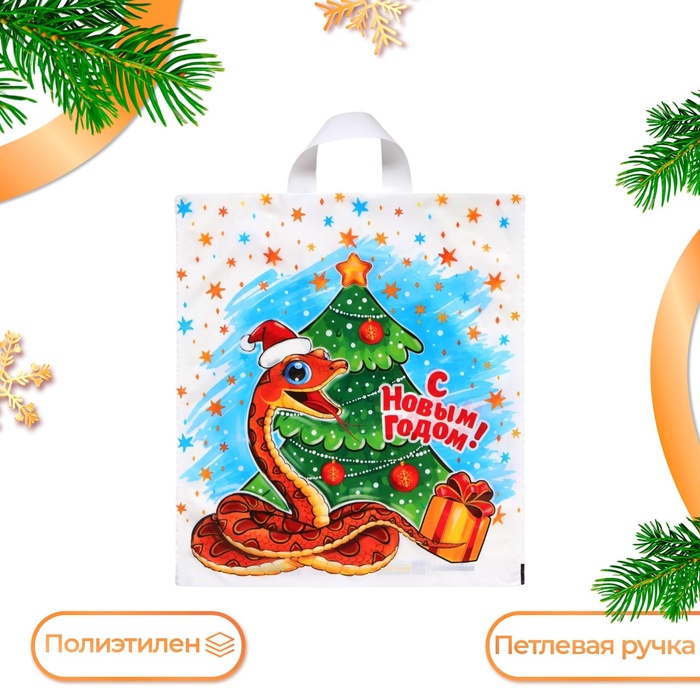 Пакет новогодний «Питоша Символ года», полиэтиленовый с петлевой ручкой, упаковка, 42×38 см