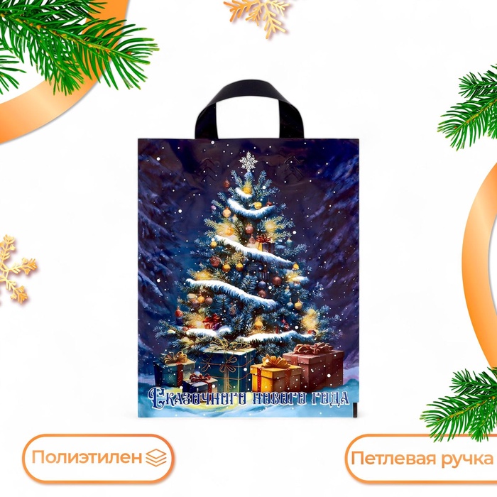 Пакет «Ёлочка с подарками», полиэтиленовый с петлевой ручкой 28×35, 50 мкм
