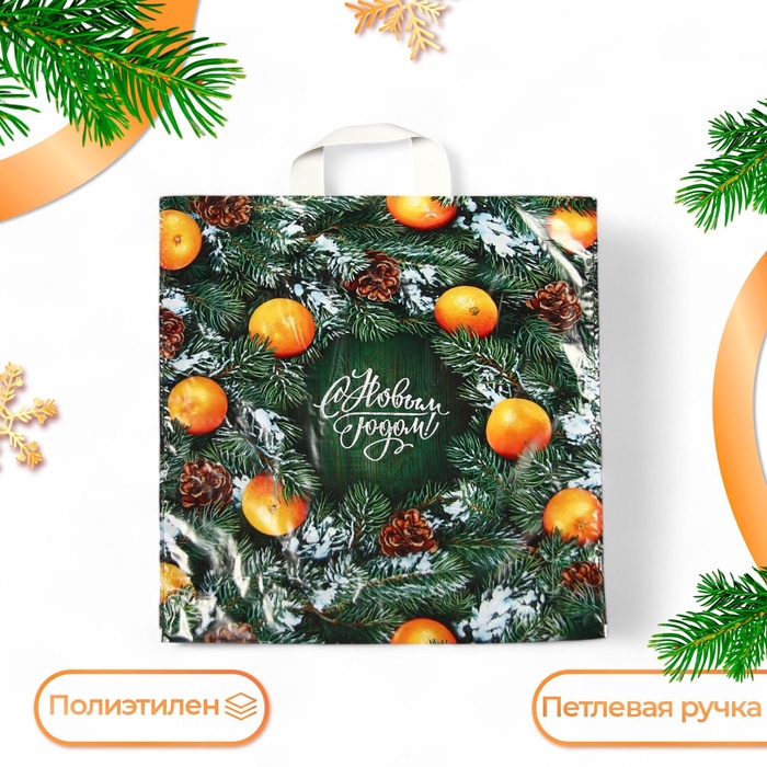 Пакет «Декабрь», полиэтиленовый с петлевой ручкой, 38×42 см