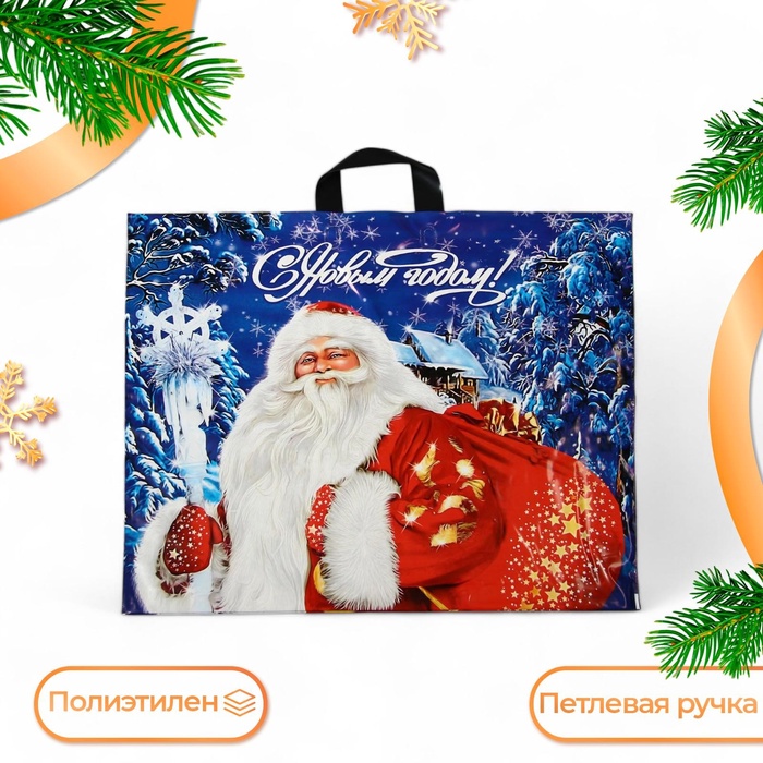 Пакет «Новогодний визит», полиэтиленовый с петлевой ручкой, 60×50 см