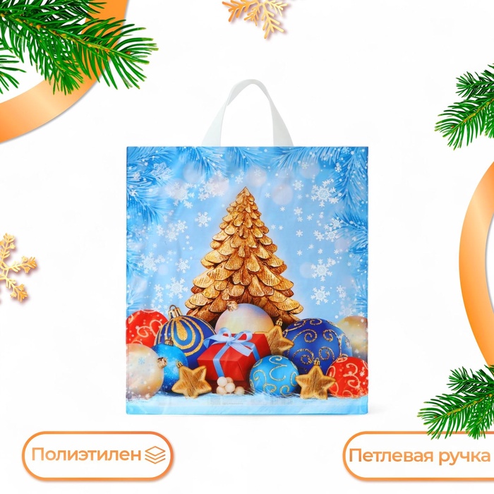 Пакет «Новогодний звон», полиэтиленовый с петлевой ручкой, 42×38 см