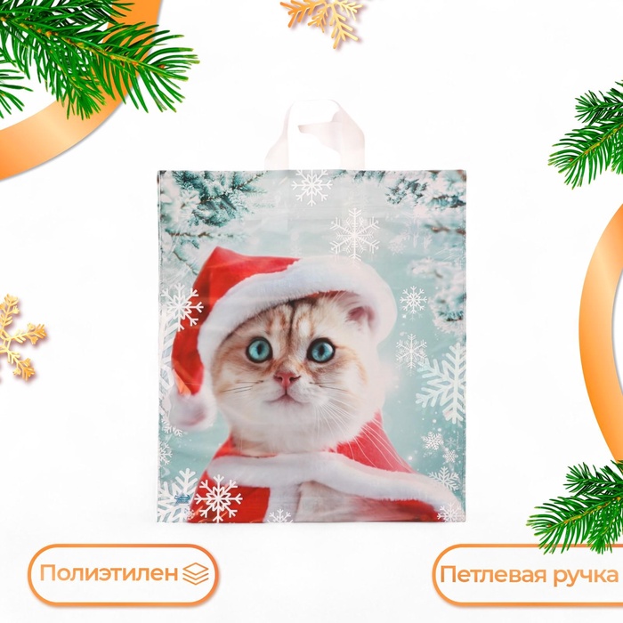 Пакет "Рыжий котенок", полиэтиленовый с петлевой ручкой, 37 х 34 см, 70 мкм