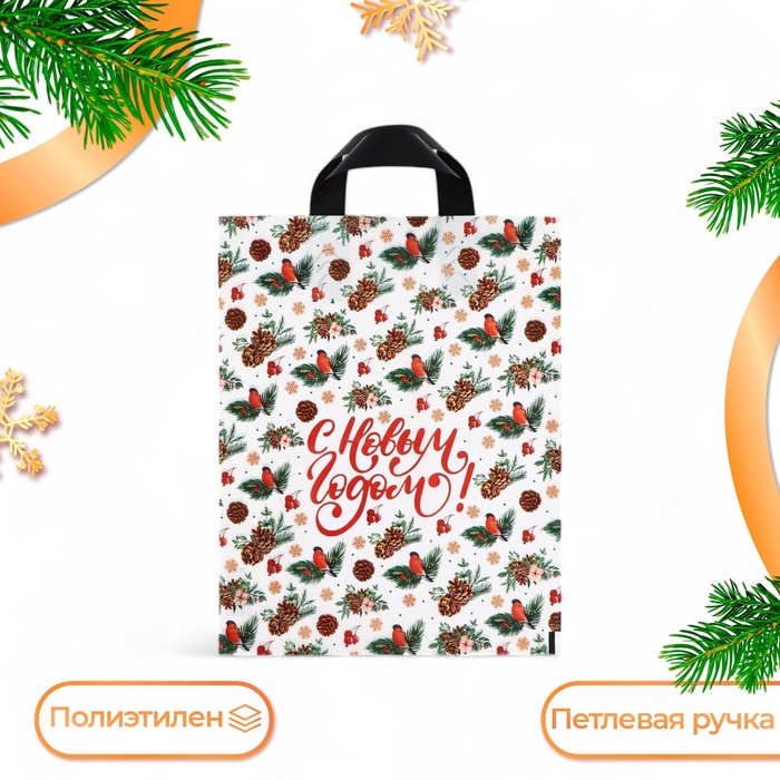 Пакет «Новогодний стиль», полиэтиленовый с петлевой ручкой 28×35, 50 мкм