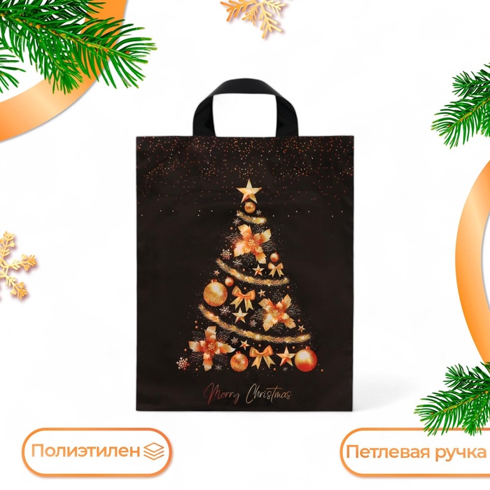 Пакет «Золотая ёлочка», полиэтиленовый с петлевой ручкой 28×35, 50 мкм