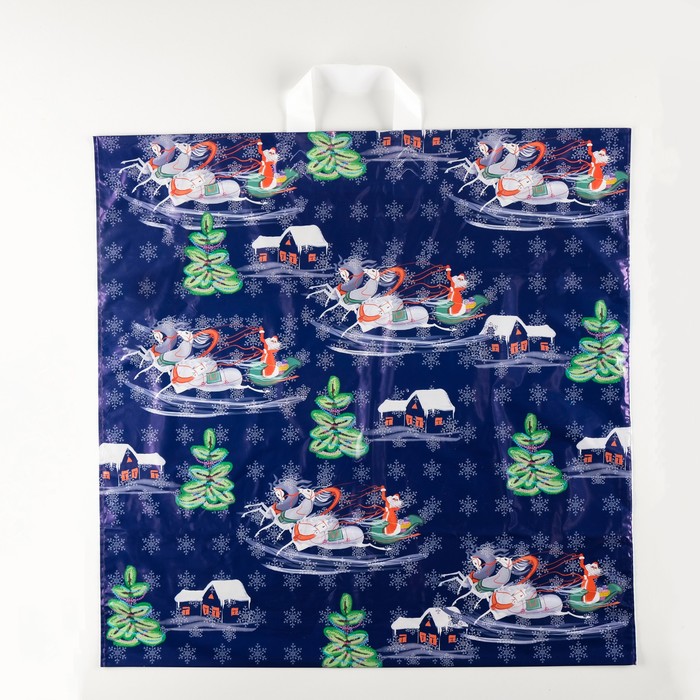 Пакет подарочный новогодний «В лесу», полиэтиленовый с петлевой ручкой, 44×44 см