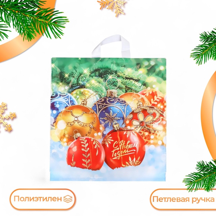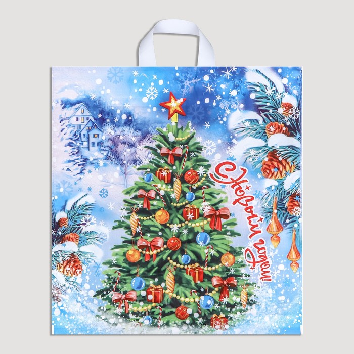 Пакет подарочный новогодний «Здравствуй ёлка», полиэтиленовый с петлевой ручкой, 40×42 см