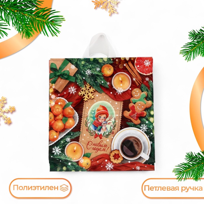 Пакет подарочный новогодний «Угощение», полиэтиленовый с петлевой ручкой, 40×42 см, 45 мкм