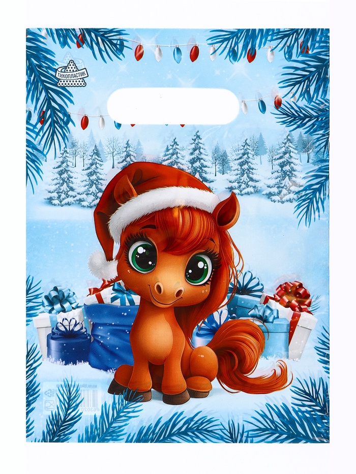 Пакет подарочный новогодний «Поняшка», полиэтиленовый с вырубной ручкой, 19×25 см, 30 мкм