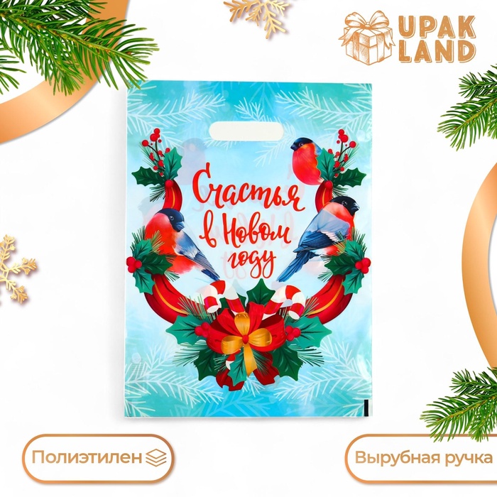 Пакет подарочный «Счастья в Новом году», полиэтиленовый с вырубной ручкой, 30×40 см