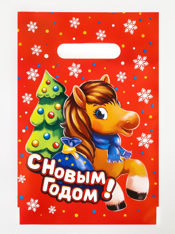 Пакет подарочный новогодний «Жеребёнок», полиэтиленовый с вырубной ручкой, 20×30 см, 30 мкм