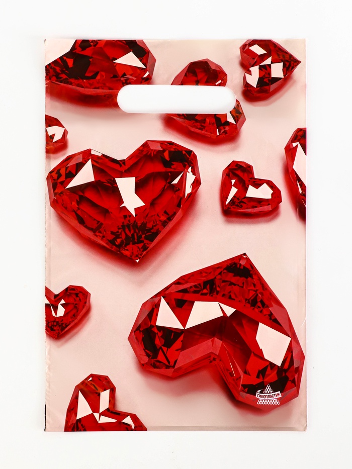 Пакет подарочный «Алые сердца», полиэтиленовый с вырубной ручкой, 20×30 см, 30 мкм