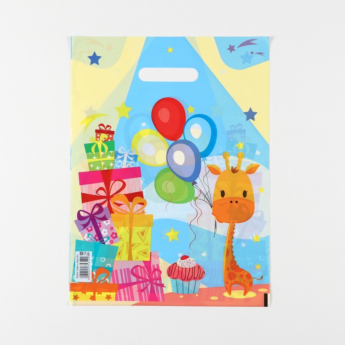 Пакет «Веселый жирафик», полиэтиленовый с вырубной ручкой, 30×40 см, 50 мкм