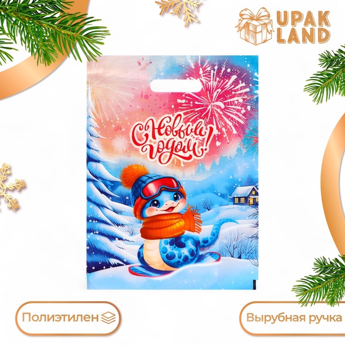 Пакет «Змея сноубордист», полиэтиленовый с вырубной ручкой, 30×40 см