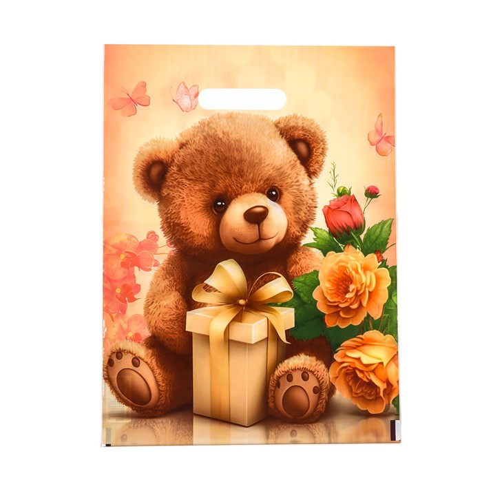 Пакет «Плюшевый мишка», полиэтиленовый с вырубной ручкой, 30×40 см, 50 мк