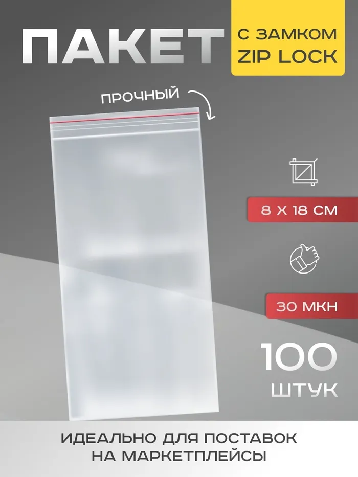 Пакет zip lock 8×18 см, 30 мкм