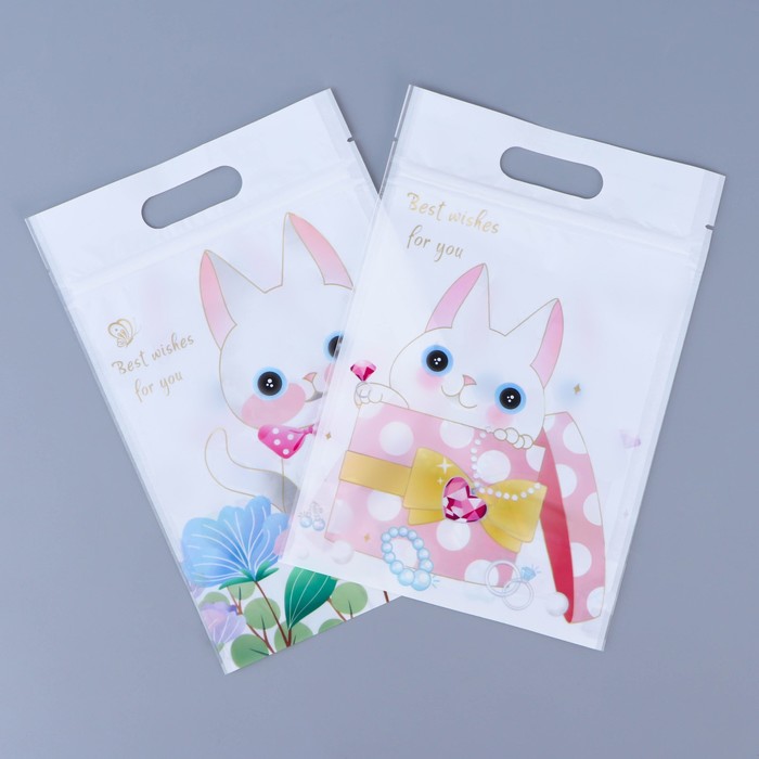 Пакет подарочный, с zip-lock застежкой, "Милые котики", 15х23 ± 1см