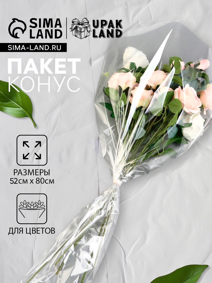 Пакет для цветов конус "Алиса", прозрачный, 45 х 60 см