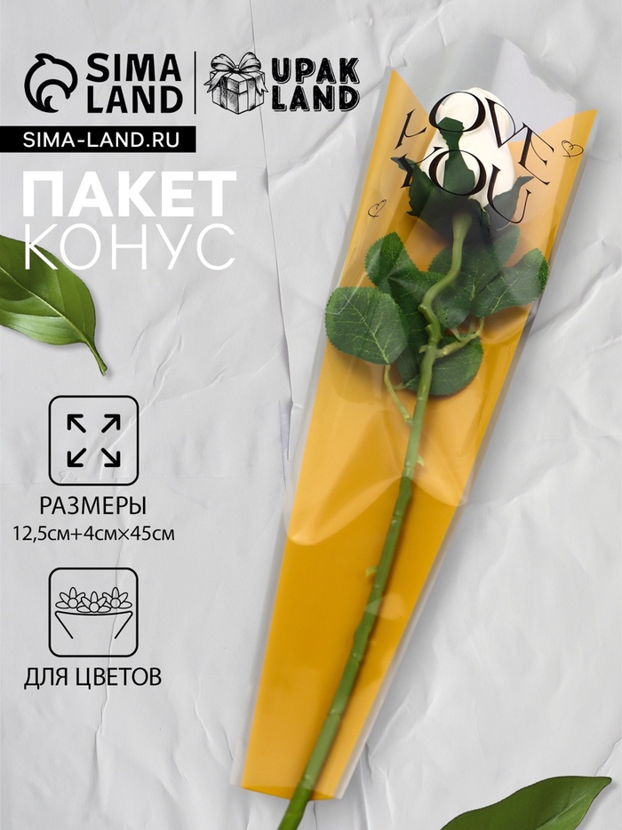 Пакет конус для цветов, «Люблю тебя», 12.5+4×45 см, жёлтый