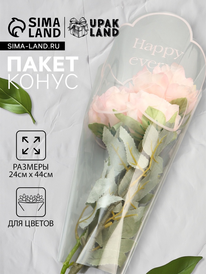 Пакет цветочный конус, «Счастье», розовый, 24×9×44 см±1 см