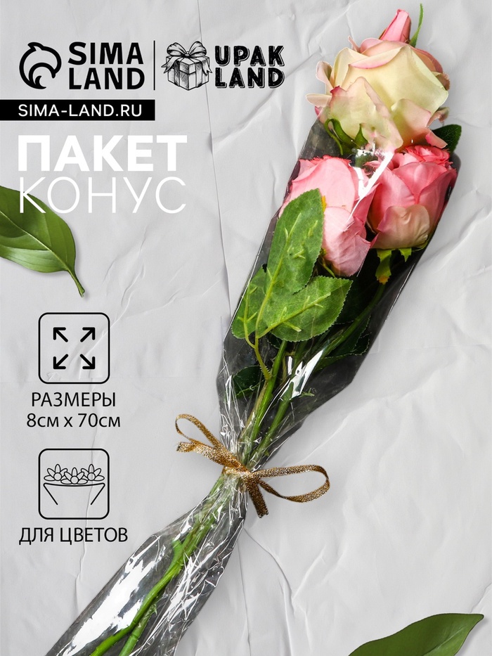 Пакет для цветов, конус, 5+20×35 см, прозрачный