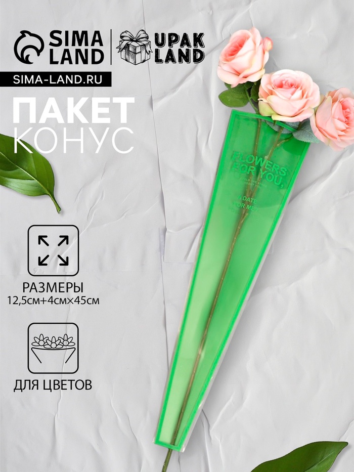 Пакет конус для цветов, «Для тебя», 12.5+4×45 см, зелёный