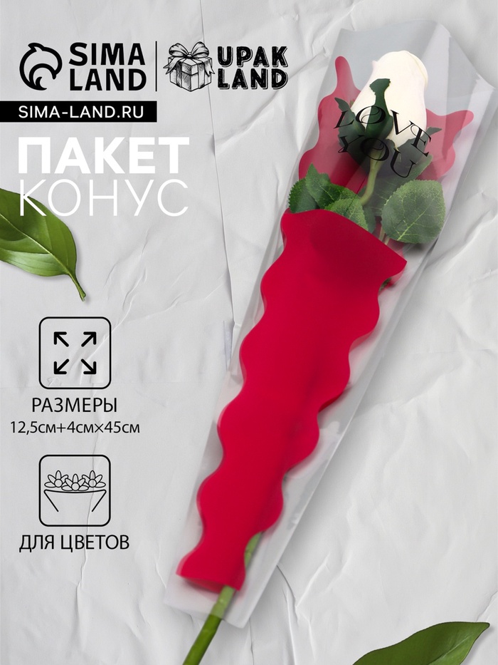 Пакет - конус для цветов, «Это для тебя», белый+ красный, 14×40 см
