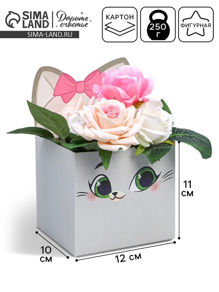 Коробка для цветов с топпером «Котик», 11×12×10 см