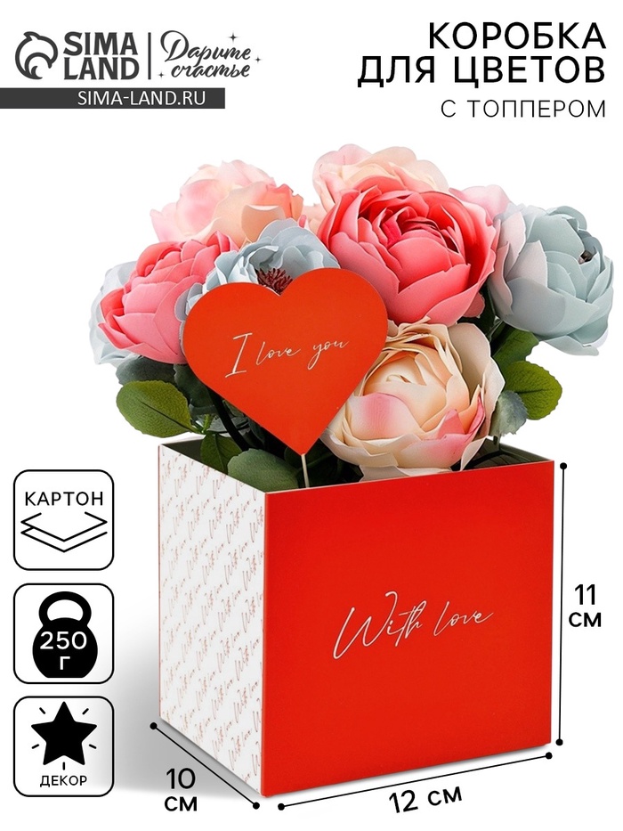 Коробка для цветов с топпером «Сердечко», 10 х 10 х 12 см