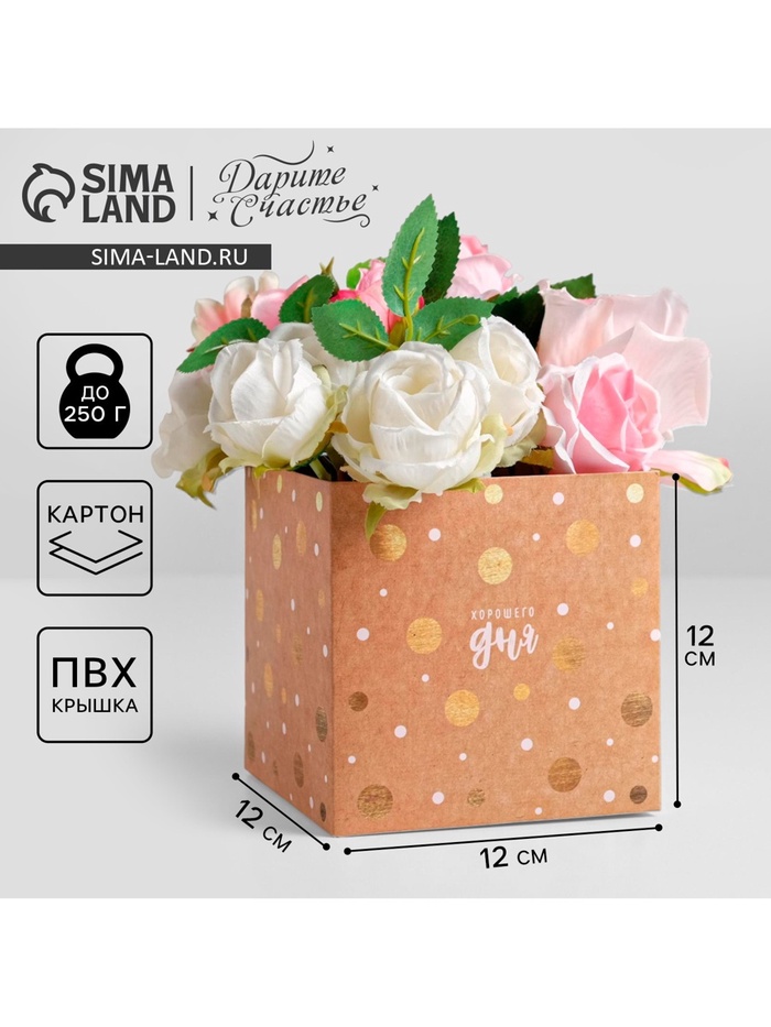 Коробка подарочная для цветов с пластиковой крышкой, упаковка, «Хорошего дня», 12 х 12 х 12 см