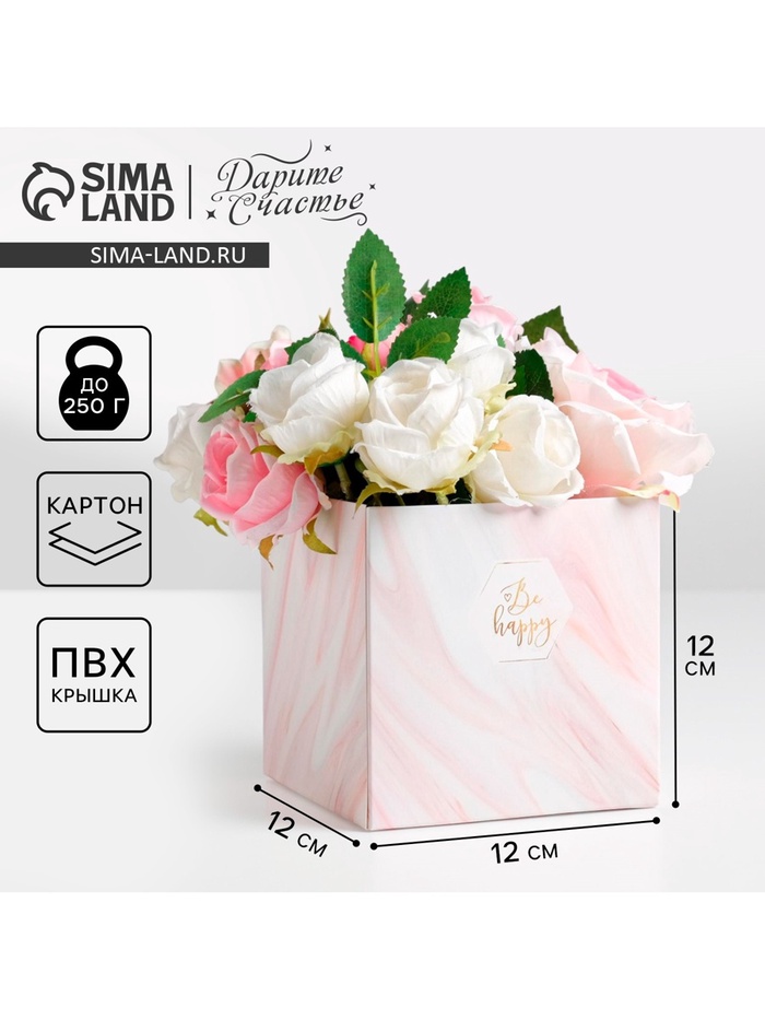 Коробка подарочная для цветов с пластиковой крышкой, упаковка, «Be happy», 12 х 12 х 12 см