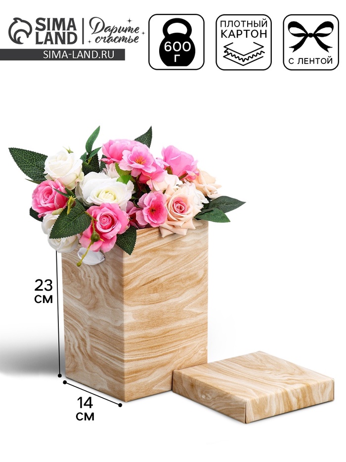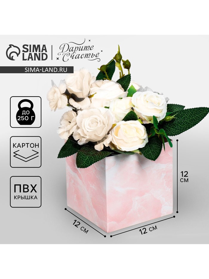Коробка подарочная для цветов с пластиковой крышкой, упаковка, «Мрамор», 12 х 12 х 12 см
