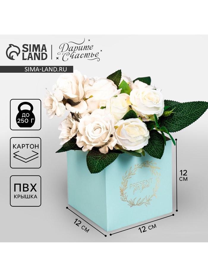 Коробка подарочная для цветов с PVC крышкой, упаковка, «Present», 12 х 12 х 12 см