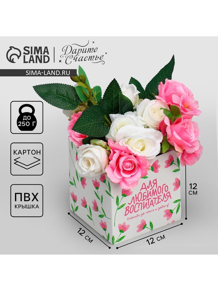 Коробка подарочная для цветов с пластиковой крышкой, упаковка, «Воспитателю», 12 х 12 х 12 см