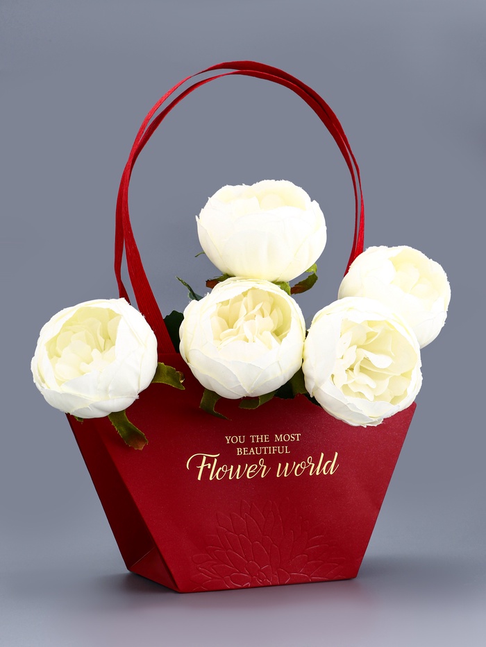 Сумка для цветов тиснение красная, «Самой прекрасной», влагостойкая, 23×15×9 см