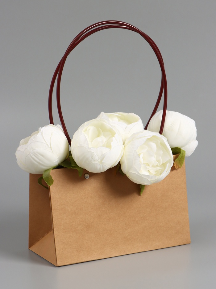 Сумка переноска для цветов, влагостойкая, крафт, 22×10.5×13.5 см