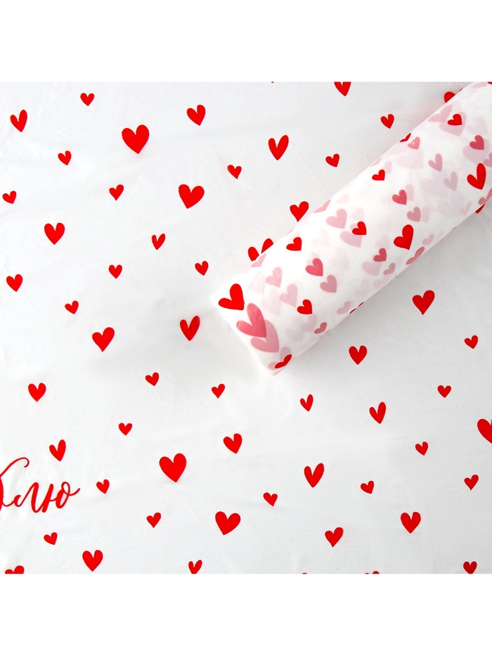 Плёнка для цветов упаковочная тишью влагостойкая «Люблю», белая, 0.6 x 10 м
