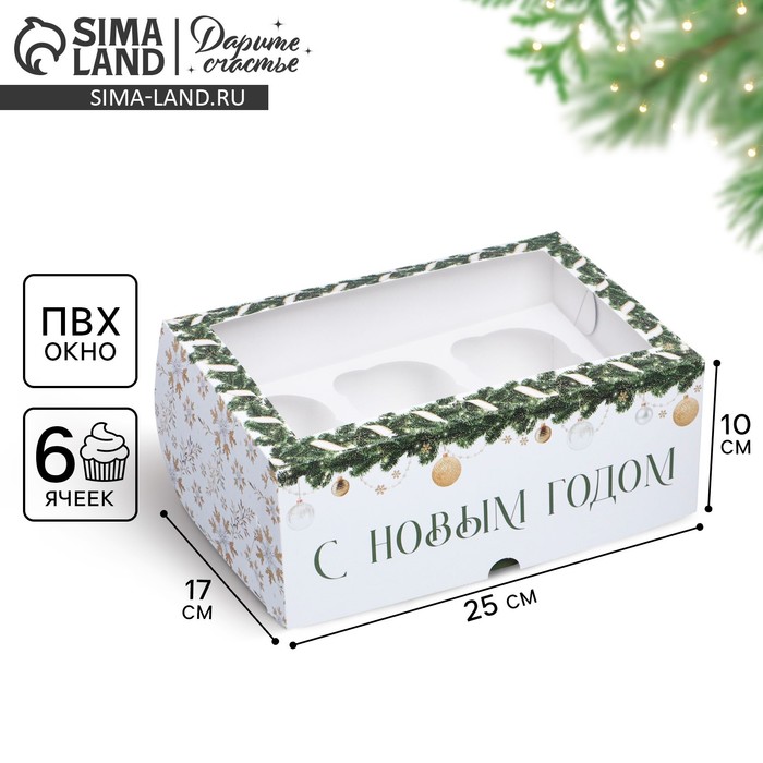 Коробка складная на 6 капкейков с окном «Паттерн снежинки», 25 х 17 х 10 см