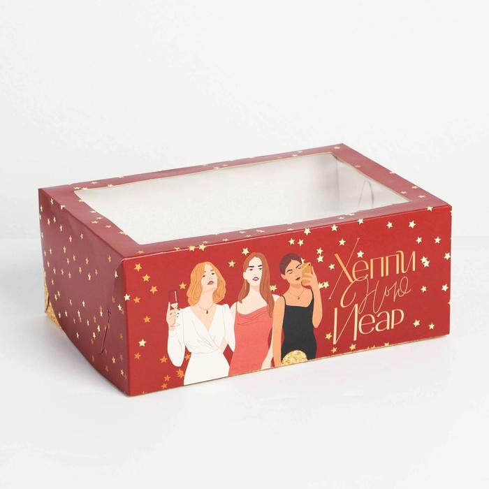 Коробка для капкейков новогодняя Happy New Year 17 х 25 х 10см