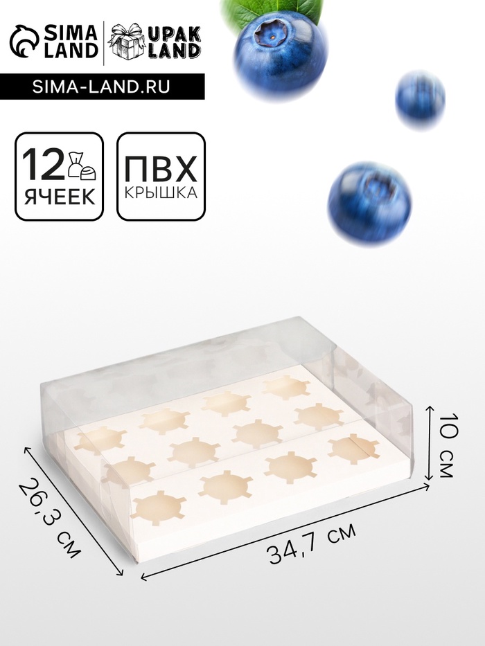 Коробка для 12 капкейков, с прозрачной крышкой, белая, 34.7×26.3×10 см набор 1 шт.