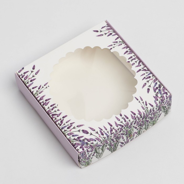 Коробка для макарун с низкими бортами, кондитерская упаковка «Лаванда», 11х 11х 3 см