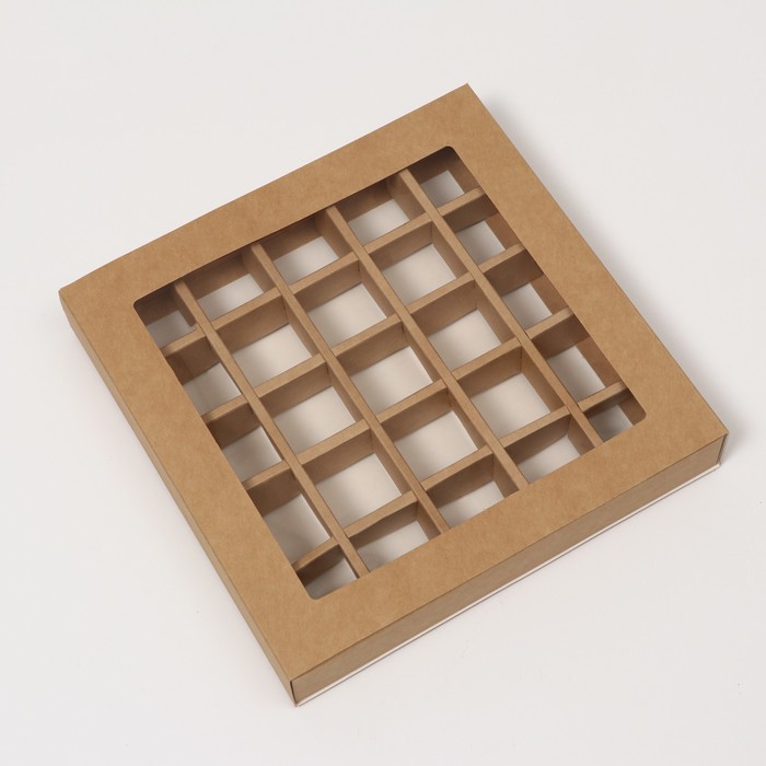 Коробка под 25 шт конфет с обечайкой, крафт, 22 х 22 х 3,5 см