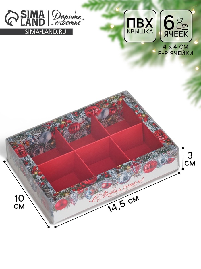 Коробка под 6 конфет с ячейками «Ёлочные новогодние шары», 10 х 14.5 х 3 см