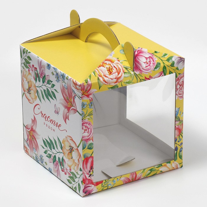 Коробка кондитерская с окном, сундук, упаковка, «Акварельные цветы» 20 х 20 х 20 см