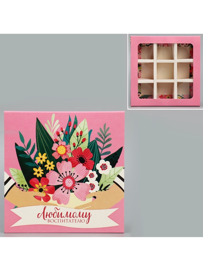 Коробка для конфет, кондитерская упаковка, 9 ячеек, «Любимому воспитателю» 14.5 х 14.5 х 3.5 см