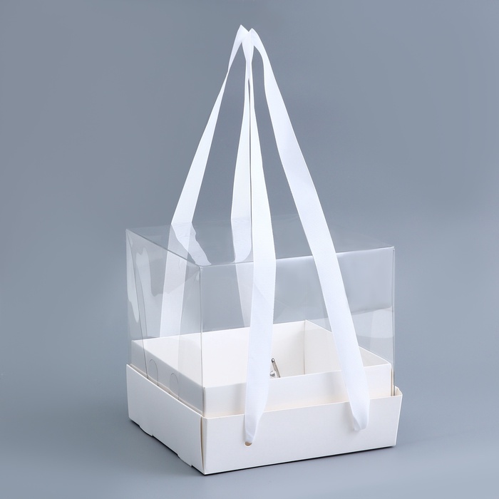 Коробка для торта с прозрачной крышкой, белая, 17×17×15 см