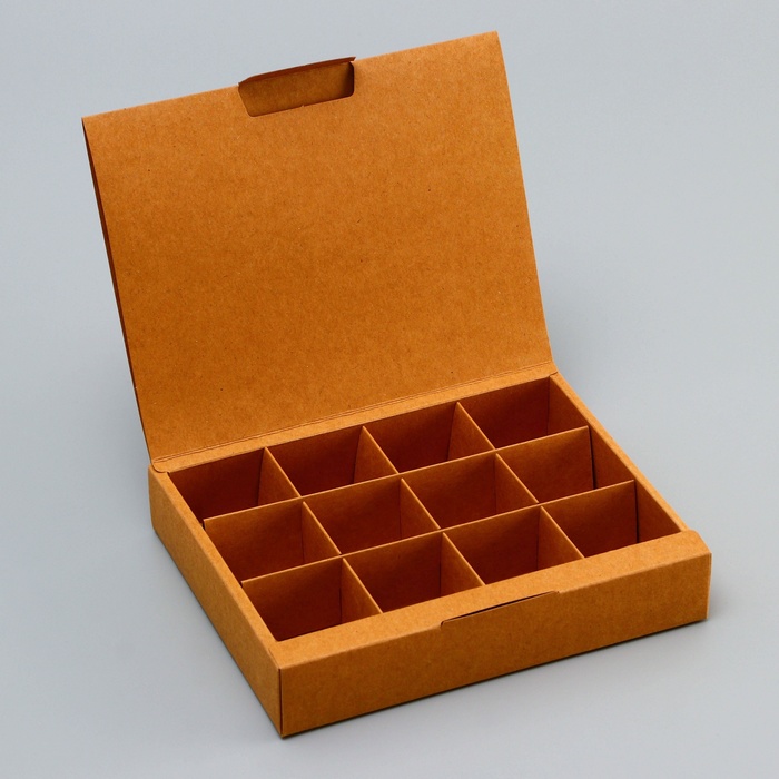 Коробка для 12 конфет, крафт с откидной крышкой, 19×15×3.5 см