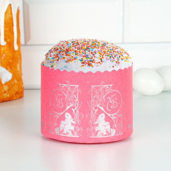 Форма бумажная для кулича «ХВ зайчата», 12.4×9 см, розовая