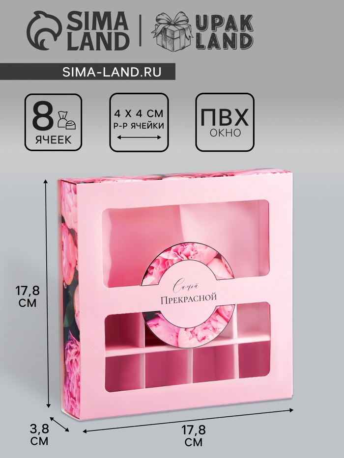Коробка для 8 конфет + шоколад, с окном «Самой прекрасной», 17.7×17.8×3.8 см Кондитерская упаковка